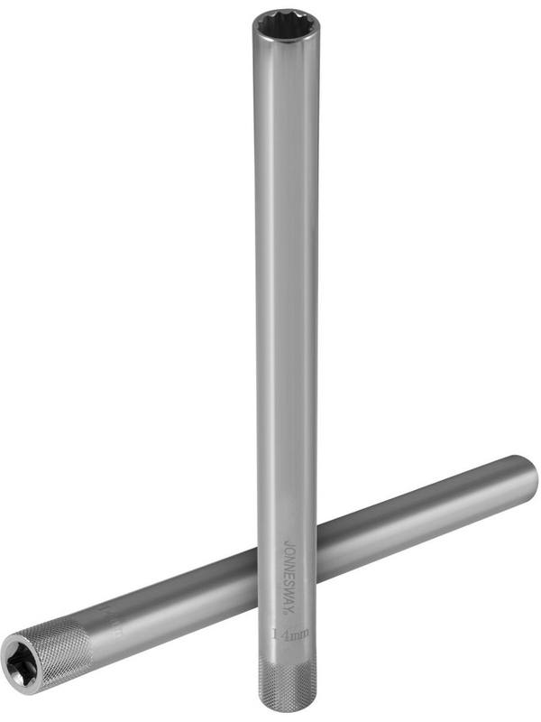 AI050092 Головка торцевая свечная 12-гранная глубокая 3/8''DR, L-250 мм, 14 мм. Специальная торцевая головка, применяемая для обслуживания свечей зажигания с 12-гранным рабочим профилем (Bi-Hex), используемых на бензиновых ДВС таких производителей как PEUGEOT, CITROЁN, BMW. Выпускаются только с резинополимерным фиксатором, обеспечивающим сохранность изолятора свечи при ее снятии/установке.