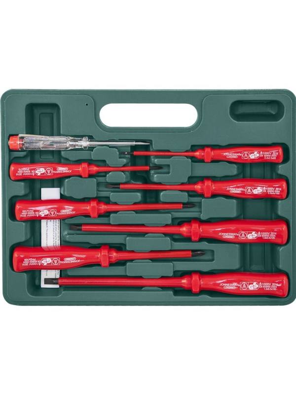 D02AP08S Набор отверток стержневых диэлектрических, 8 предметов, Стержневые отвертки - самый распространенный вид инструмента для работы с резьбовыми крепежными деталями, с внутренними рабочими профилями. Эти инструменты компактны, не требуют дополнительных операций по сборке, снабжены эргономичными рукоятками.Стержневые диэлектрические отвертки применяются для производства работ с электрооборудованием, находящимся под напряжением до 1000 В. Изолирующие рукоятки обеспечивают защиту оператора от поражения электрическим током согласно всем требованиям стандарта VDE, соответствующего IEC 60900, полностью отвечают требованиям ГОСТ 21010-75. Содержание:Отвертки шлицевые, SL, 4 шт.: SL0,4х2,5х85, SL0,8-х4,0х100, SL1,0х5,5х125, SL1,2х6,5х150;Отвертки крестовые, PH, 3 шт.: PH0х75, PH1х100, PH2х200;Отвертка-тестер;Пластиковый кейс.