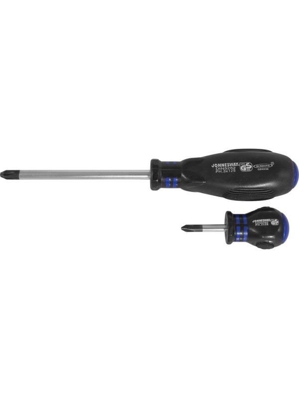 Стержневые отвертки - самый распространенный вид инструмента для работы с резьбовыми крепежными деталями, с внутренними рабочими профилями. Эти инструменты компактны, не требуют дополнительных операций по сборке, снабжены эргономичными рукоятками. По конструкции стержневые отвертки можно разделить на отвертки со скрытой установкой стержня в рукоятке и отвертки со сквозной установкой стержня. Как правило, такие отвертки имеют стальной затыльник, позволяющий наносить ограниченный по силе удар по инструменту, направленный на то, чтобы поправить деформированный или очистить загрязненный профиль крепежа или же хотя бы частично разрушить оксидные соединения, являющиеся причиной "прикипания" крепежа.Стержневые отвертки серии JONNESWAY "HERCULES" отмечены сертификатом GS, изготовлены в соответствии с требованиями стандарта DIN 5262, отвечают техническим условиям ГОСТ 17199-88.