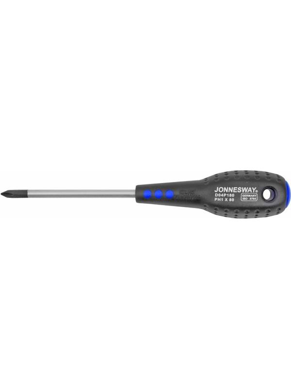 Стержневые отвертки - самый распространенный вид инструмента для работы с резьбовыми крепежными деталями, с внутренними рабочими профилями. Эти инструменты компактны, не требуют дополнительных операций по сборке, снабжены эргономичными рукоятками. Стержневая отвертка популярной серии JONNESWAY "FULL STAR", изготовлена в соответствии с требованиями стандарта DIN 5262, отвечает техническим условиям ГОСТ 17199-88. Изделие комплектуется высококачественным стержнем из хромомолибденованадиевой стали, намагниченная рабочая часть отвертки в состоянии удерживать крепеж, что очень часто помогает при работе в труднодоступных местах, а изготовленна из бензомаслостойкого АБС пластика рукоятка удобно лежит в руке.